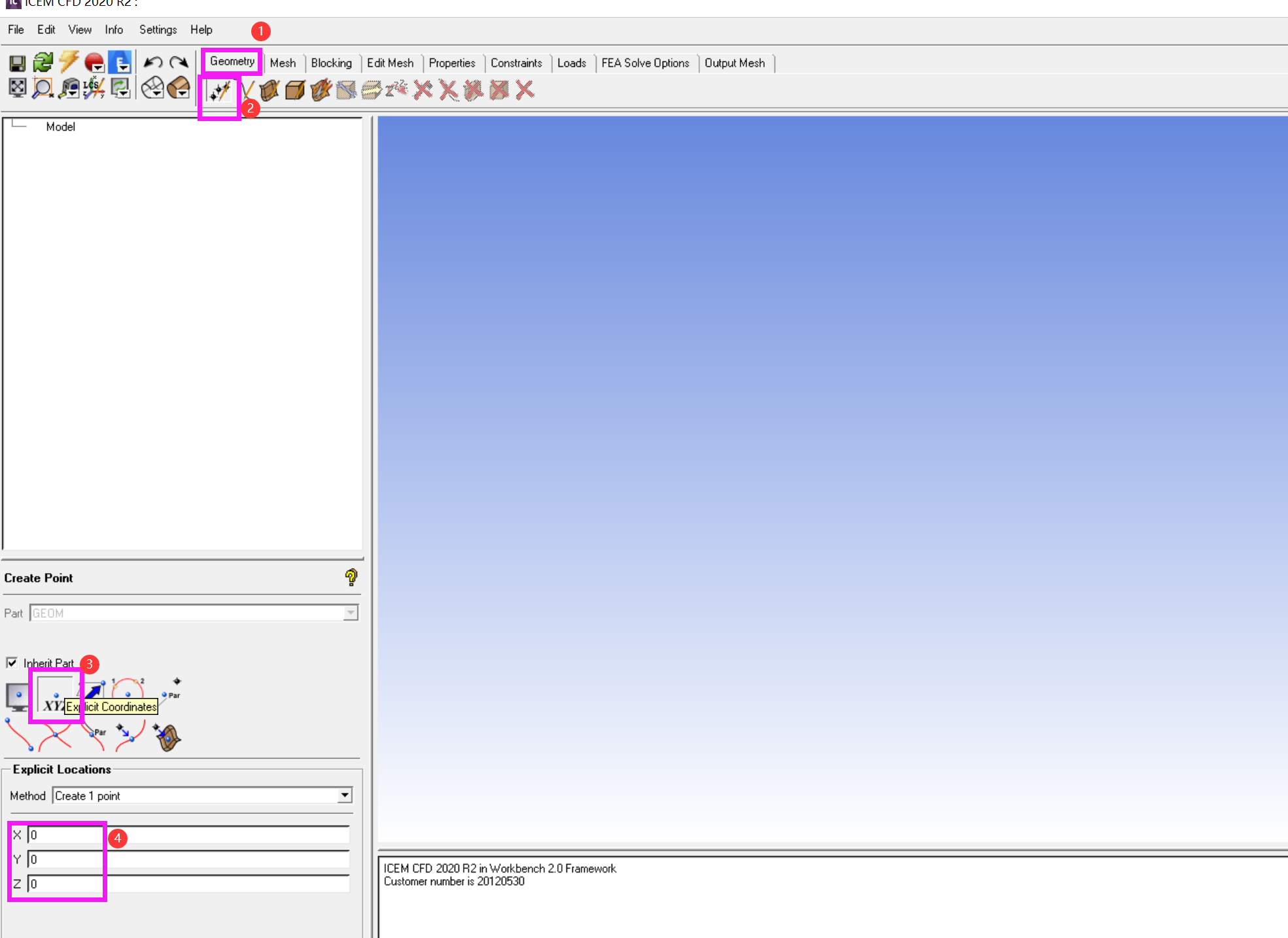二维模型可以使用ICEM进行建模及网格划分,因为二维模型一般比较简单,采用DM和SC对于这种二维模型进行网格划分时容易出问题