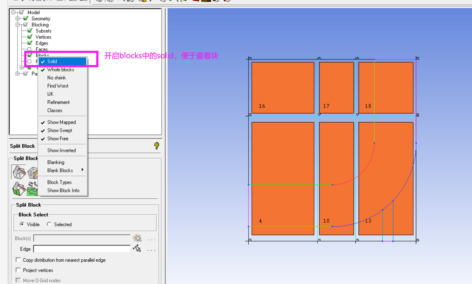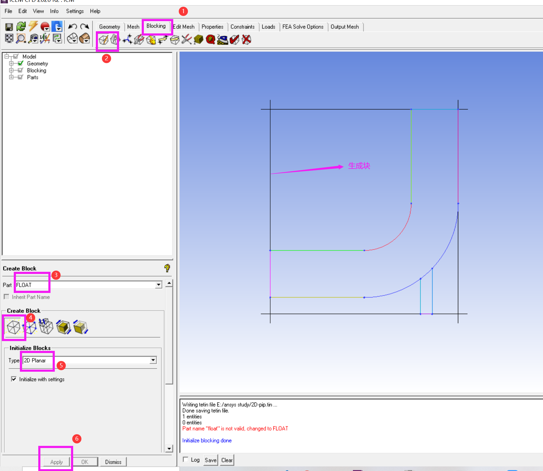 二维模型创建好后需进行网格划分,先创建块,操作如下