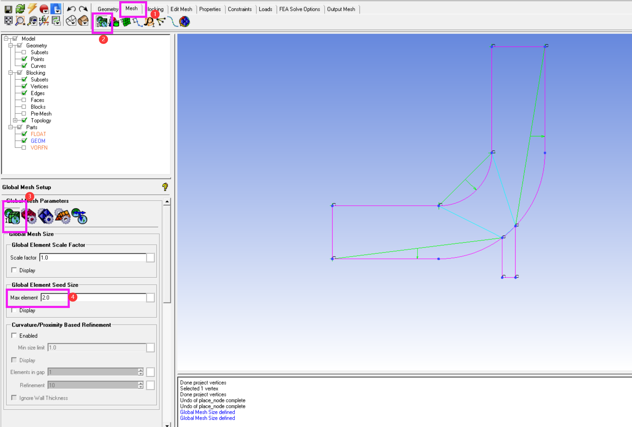 之后开始进行网格划分,需要设置网格尺寸,先设定一个总体尺寸