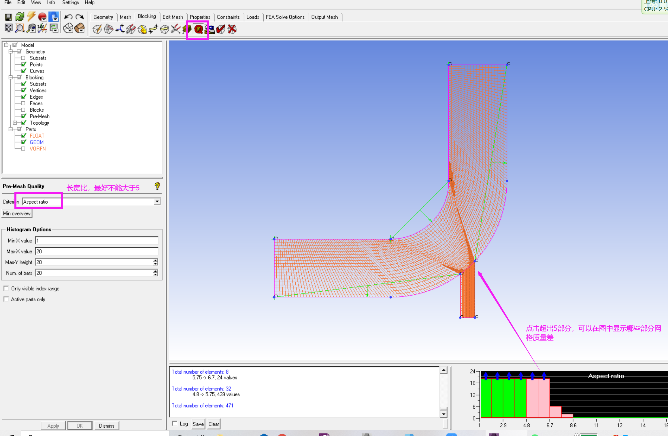 可以看到网格太宽,需调整全局网格中最大网格尺寸,将全局最大尺寸调整到0.2,然后再看网格质量