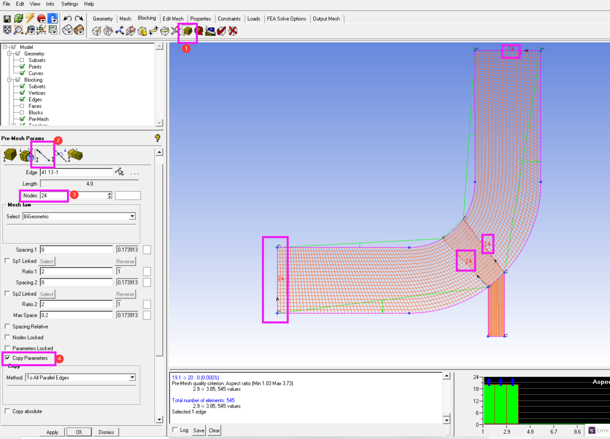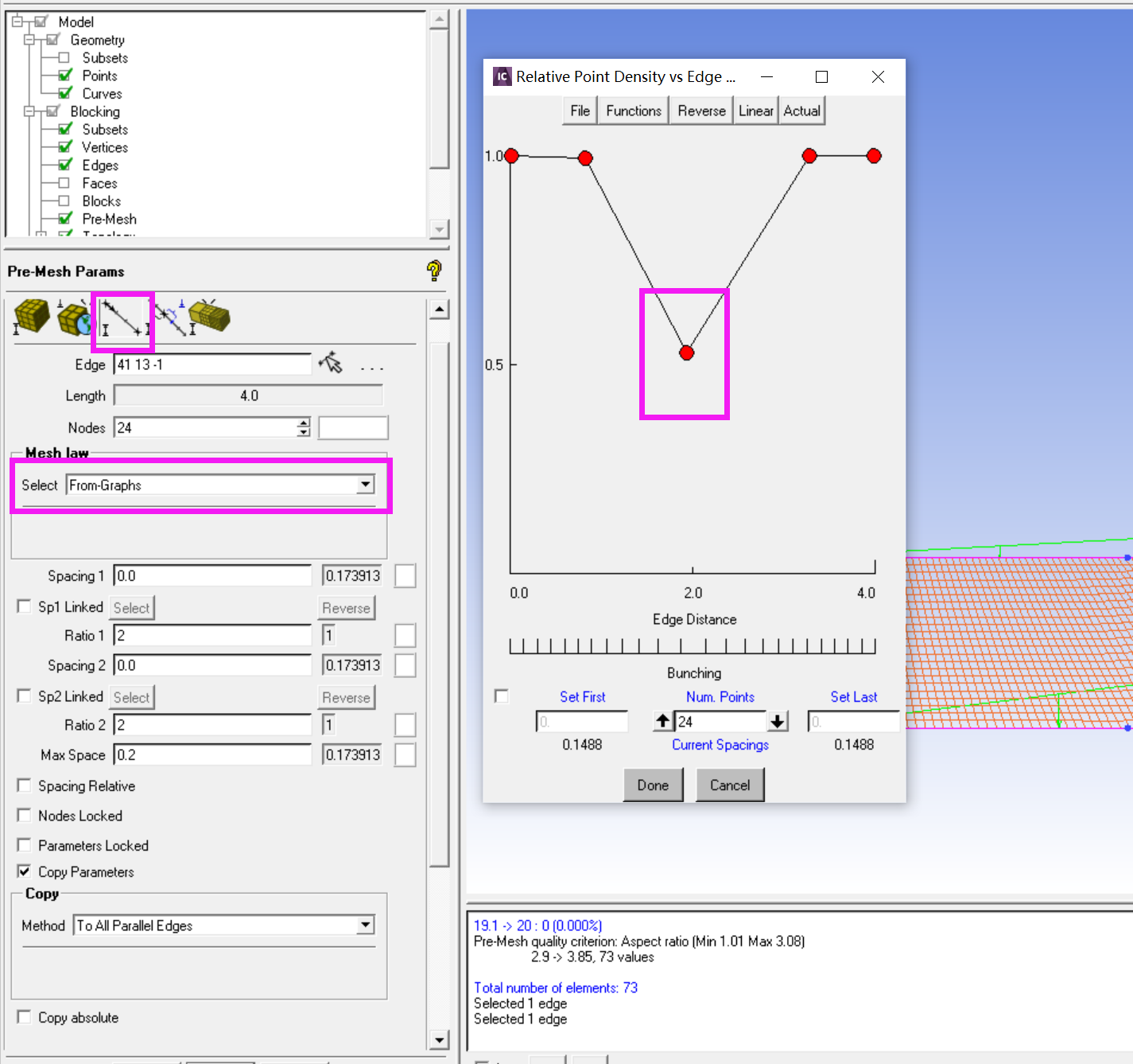 同时对于管道网格,还可以调节管道边缘处和中心处网格疏密程度到不一致